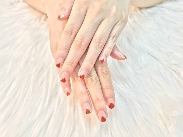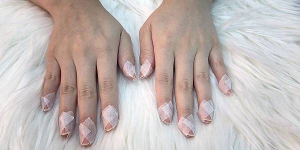 然後再用醫療用的白布膠 將指甲兩側包起來 這樣就會露出 指尖三角形區域