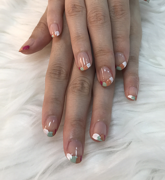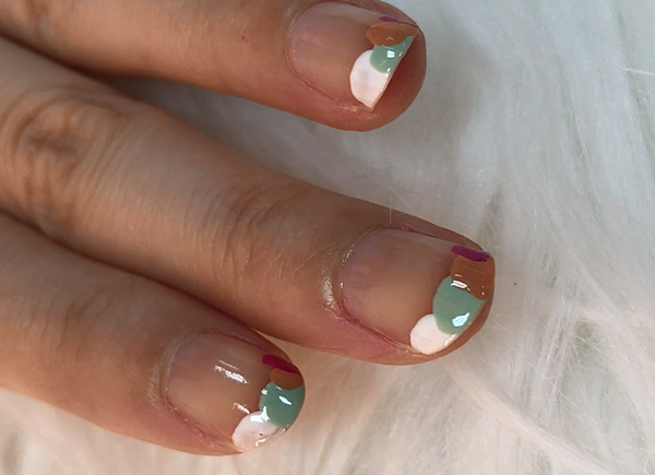 依序沾取這四種顏色像畫花邊的方式推疊在指緣邊